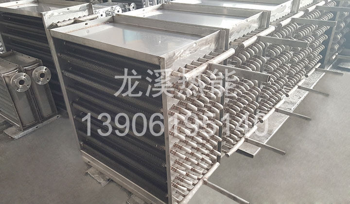 翅片管與進氣和回水總管的連接,均采用氬弧焊,焊接處進行酸洗潔凈。BGL型熱變換器,既是熱交換,又是冷卻俱能。通入低溫水或鹽水可以冷卻空氣,通入高溫水或蒸汽即能加熱空氣。