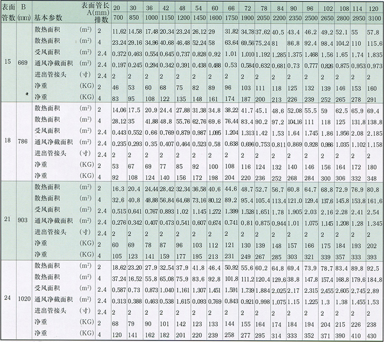 如采用四排,表面管數(shù)為10,管長為42英寸時(shí),則為GLⅡ-4-10-42。